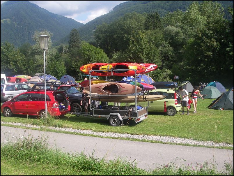 Kempovali jsme ve skvělém kempu v Obervellachu. Klidné místo s malou hospůdkou (doporučená specialita „Raftersteak“) bylo výjimečné i tím, že zde byl i docela dobrý playspot (na kterém bohužel oscilovala hladina vody podle toho, jak byla vypouštěna z nedaleké elektrárny). Počasí docela vyšlo, i když průvan v údolí byl chvílemi až obtěžující. Hned druhou noc nám napršela voda, což bylo zajištěno 6 ks krušovického piva, které jsme věnovali bohům vod a řek hned první večer.