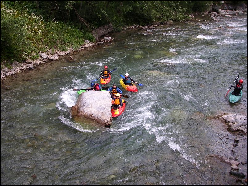 Středa byla zasvěcena Gailu. Ze silnice velmi špatně přístupná řeka se ukázala jako přátelská, i když několik výživných úseků s válečky naplnilo naše očekávání v tom, že to nebude jen pohodička. Začínali jsme u mostu na 92 km (stav 74 cm –ww III). V Kotschach se k nám připojila II. skupina. 10 km málo ježděného úseku (wwI-II) byl pěkný, nebýt dvou nesjízdných a špatně přenesitelných jezů. Končilo se u mostu zhruba na 68 km.